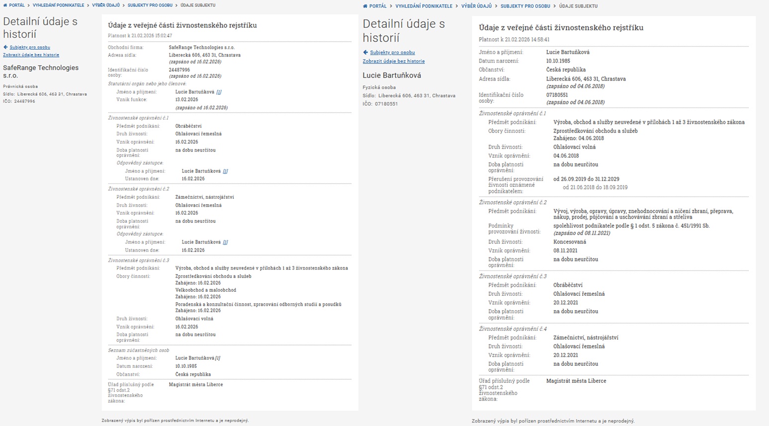 Original documents are issued by Czech state authorities and are publicly verifiable.